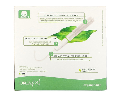 Способ приёма, инструкция применения добавки Organyc, Organic Tampons, Compact, 16 Super Absorbency Tampons