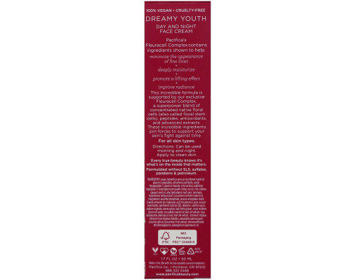 Компоненты добавки Pacifica Дневной и ночной омолаживающий крем для всех типов кожи Естественный уход за кожей 1.7 жидких унций (50 мл)