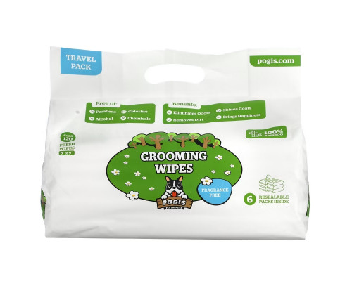 Компоненты добавки Pogi's Pet Supplies, Салфетки для ухода, дорожная упаковка, без отдушек, 6 упаковок, 20 свежих салфеток в каждой