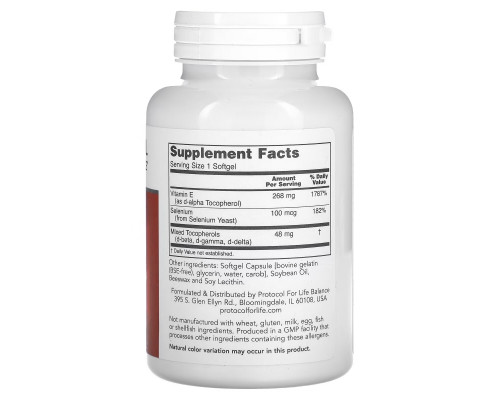Компоненты добавки Protocol for Life Balance, E-400, 268 mg (400 IU), 120 Softgels
