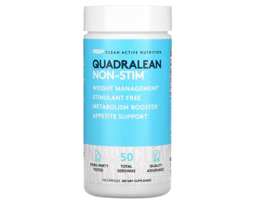 Описание добавки RSP Nutrition, QuadraLean, Stimulant-Free Weight Management, 150 Capsules