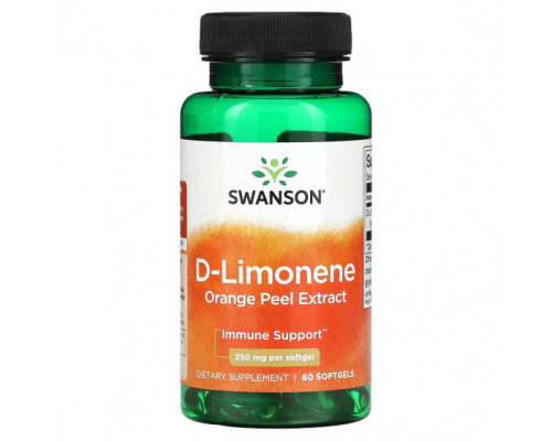 Компоненты добавки Растительные экстракты и настойки Swanson, D-лимонен, экстракт апельсиновой цедры, 250 мг, 60 мягких таблеток