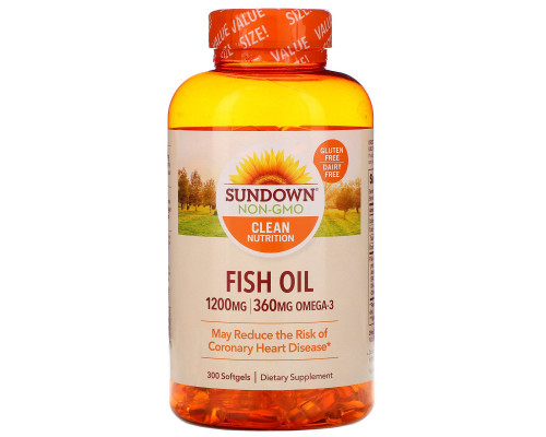 Компоненты добавки Sundown Naturals, Рыбий жир, 1200 мг, 300 мягкие капсул