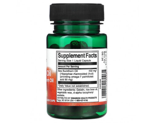 30 шт.Описание добавки Рыбий жир и Омега 3, 6, 9 Swanson, Омега-7 масло из облепихового масла, 450 мг, 30 капсул