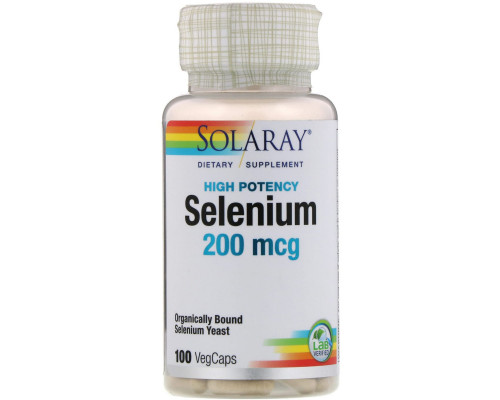 100 шт.Описание добавки Solaray, Селен, 200 мкг, 100 вегетарианских капсул