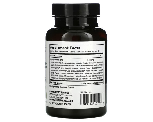 Компоненты добавки Sunfood, Supergreens Capsules, 620 mg, 90 Capsules