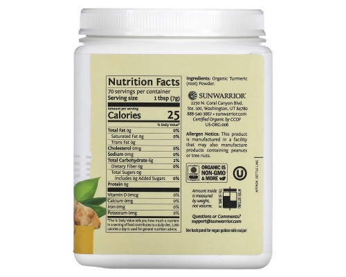 Описание добавки Sunwarrior, Turmeric Root Powder , 1.08 lb (490 g)