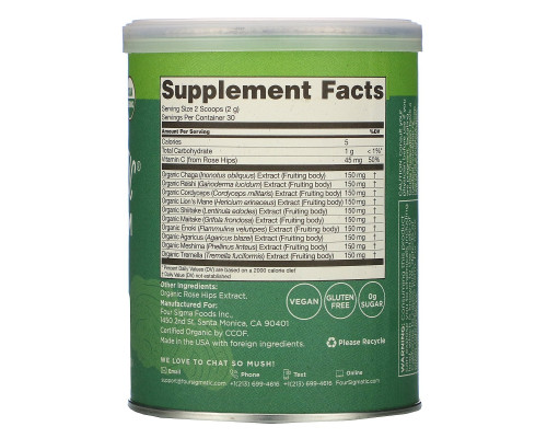 Компоненты добавки Four Sigmatic, Superfood Blends, 10 Mushroom Blend, 30 Servings, 2.12 oz (60 g)