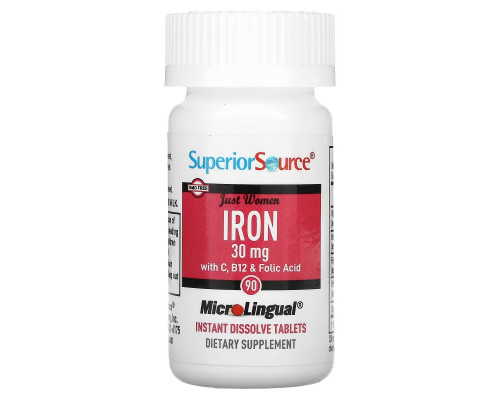 Компоненты добавки Superior Source, Just Women, железо с витамином C, B12 и фолиевой кислотой, 15 мг, 90 быстрорастворимых таблеток MicroLingual (Товар снят с продажи)