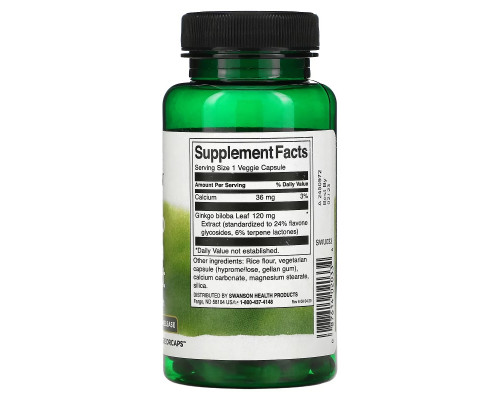 Описание добавки Swanson, Ginkgo Biloba Extract, 120 mg, 100 Veggie DRcaps