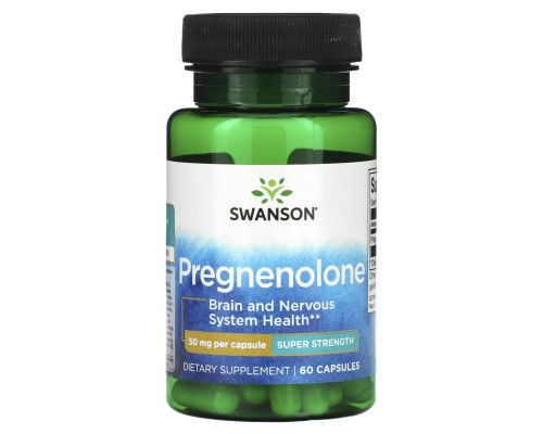 Описание добавки Swanson, Прегненолон, суперсила, 50 мг, 60 капсул