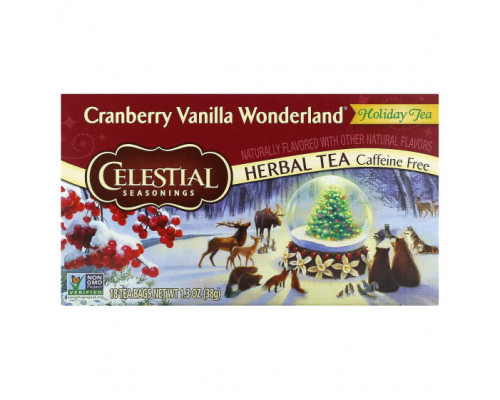 Компоненты добавки Травяные сборы и чаи Celestial Seasonings, травяной чай к празднику, клюква и ваниль, без кофеина, 18 чайных пакетиков, 38 г (1,3 унции)