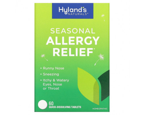 0.06 кгОписание добавки Травы и натуральные средства Hyland's Naturals, Seasonal Allergy Relief, 60 быстрорастворимых таблеток