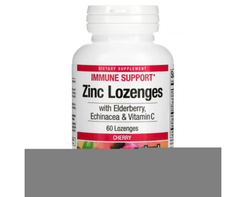 60 шт.Описание добавки Цинк Natural Factors, Цинковые леденцы, с бузиной, эхинацеей и витамином C, вишней, 60 пастилок