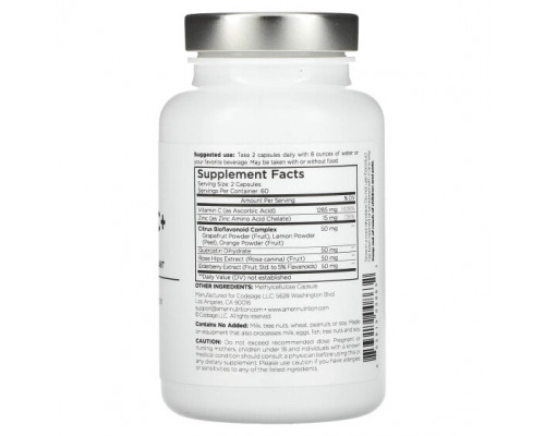 Компоненты добавки Витамин C Codeage, Amen, витамин C+, для здоровья иммунной системы, антиоксидант, 120 растительных капсул