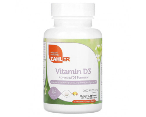 120 шт.Описание добавки Витамин D Zahler, Витамин D3, апельсин, 50 мкг (2000 МЕ), 120 жевательных таблеток