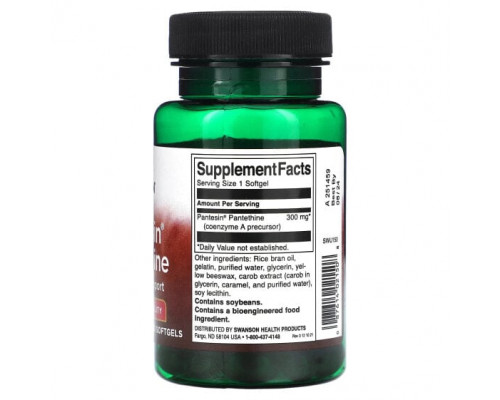 Компоненты добавки Витамины группы B Swanson, Pantesin Pantethine, 60 мягких таблеток