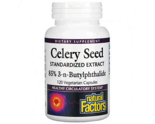 Компоненты добавки Зелень и зеленые овощи Natural Factors, Стандартизированный экстракт семян сельдерея, 120 вегетарианских капсул