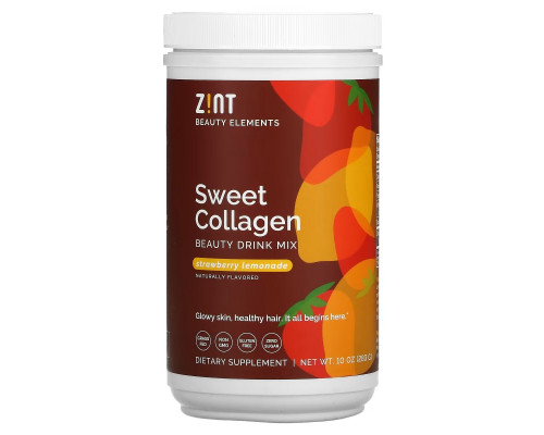 Компоненты добавки Zint, Sweet Collagen, Beauty Drink Mix, Strawberry Lemonade, 10 oz (283 g)