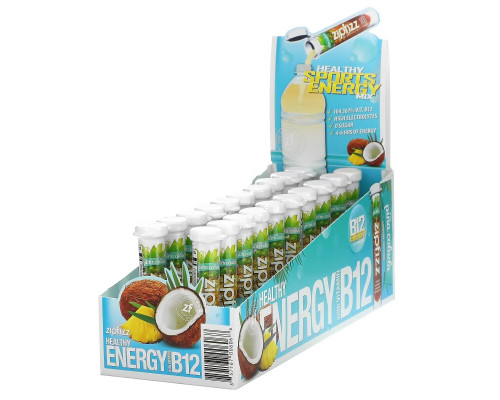 Описание добавки Zipfizz, Healthy Energy With Vitamin B12, Pina Colada, 20 Tubes, 11 g Each